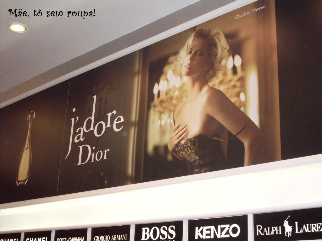 A Loja foi toda “Diorizada” para receber o evento. Tem um pôster enorme da Linda Charlize Theron na parede dos perfumes: