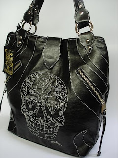 Tinha uma arara apenas com um cinto bicolor e uma bolsa shopper de caveira verde. O efeito da caveira em alto relevo nela é bem legal, parece um coisa tipo 3D. Fiquei interessada na preta, mesmo a alça sendo curta para colocar no ombro com conforto. É um investimento pra pensar, tá custando R$ 250 reais. As outras bolsas tiracolo também são bonitas, principalmente a maior com as iniciais HA em relevo.